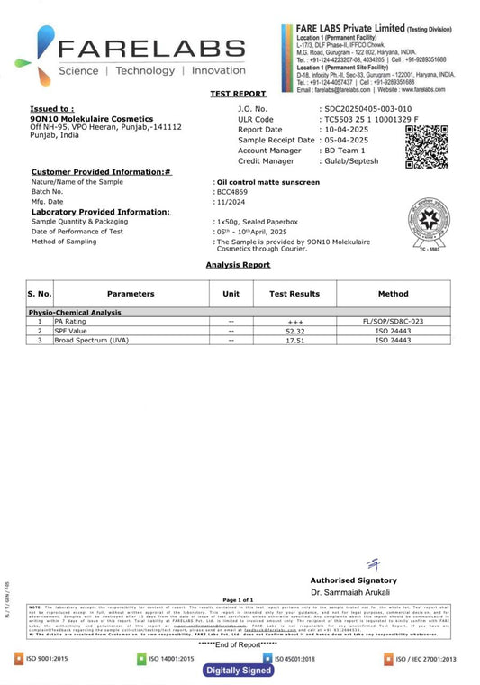 Sold outOil Control Matte Sunscreen