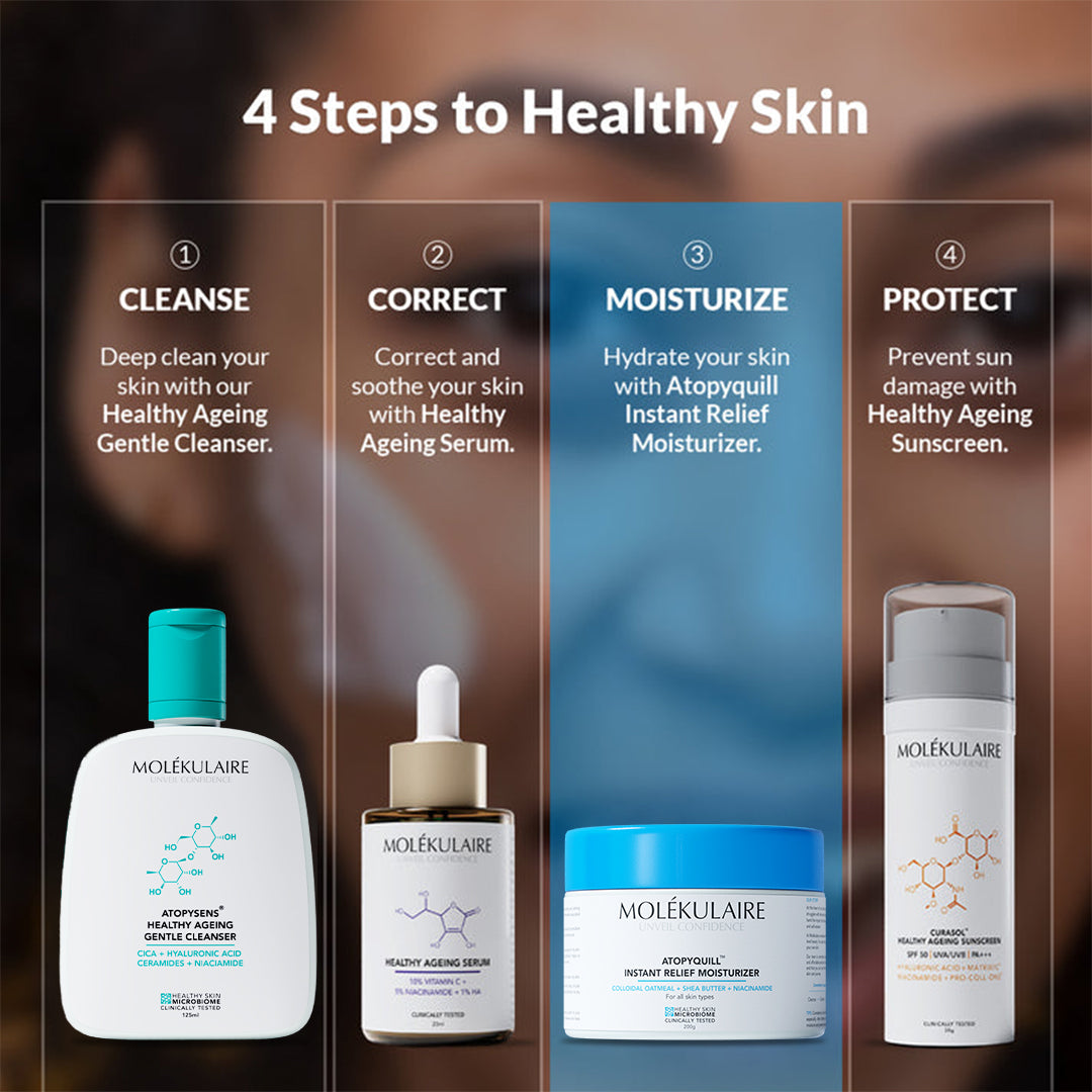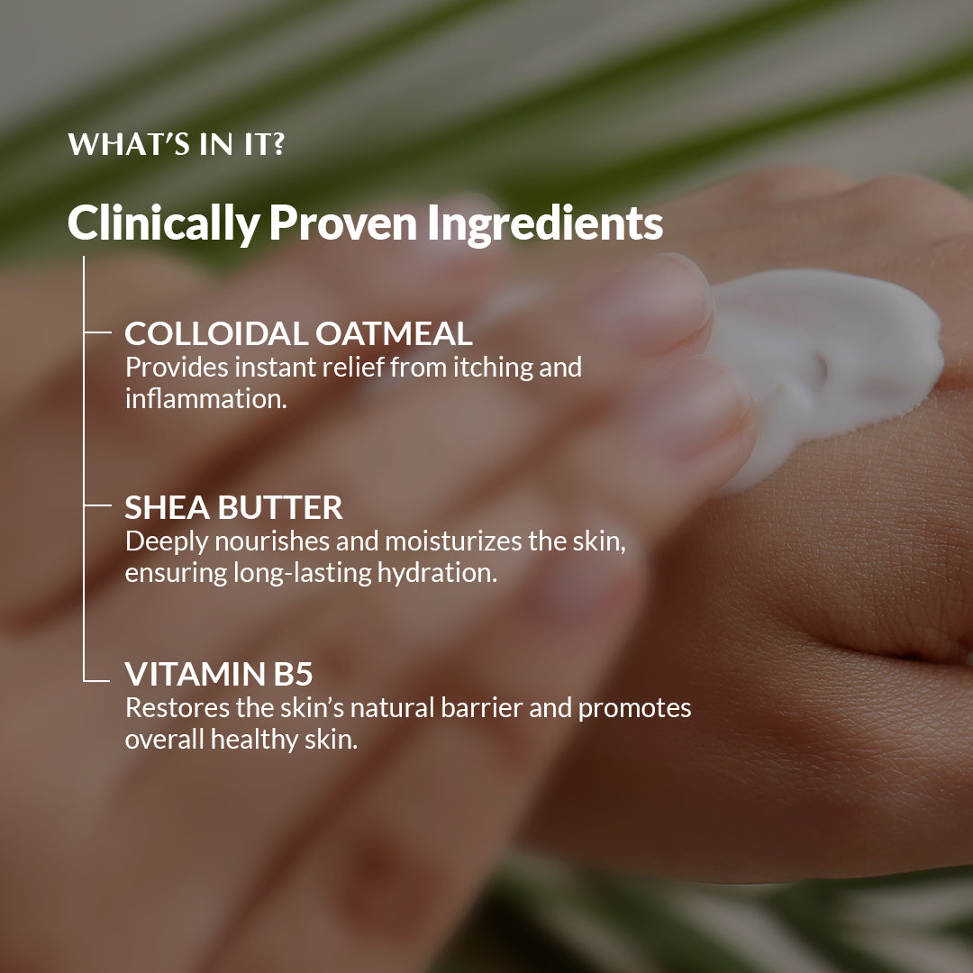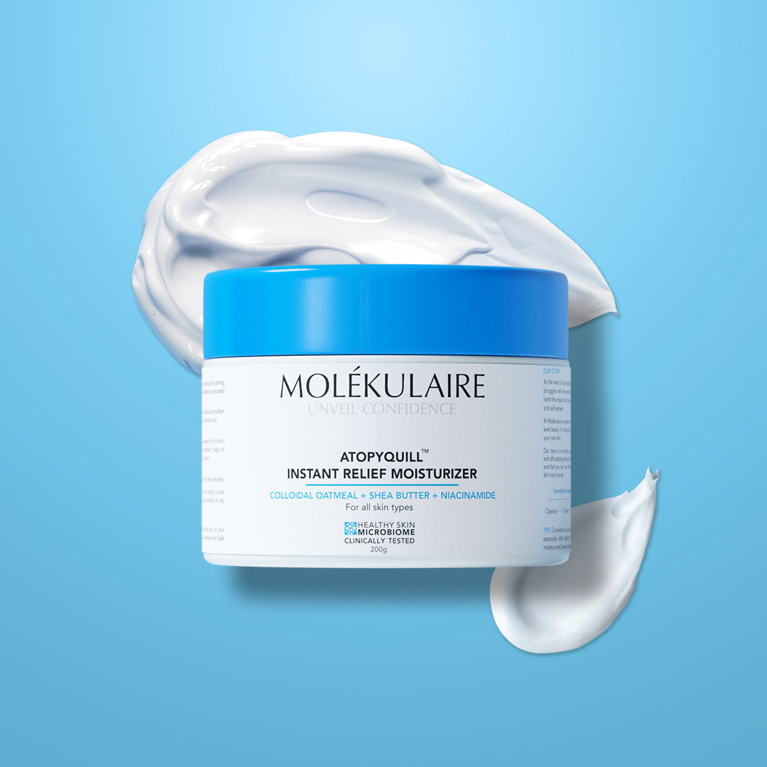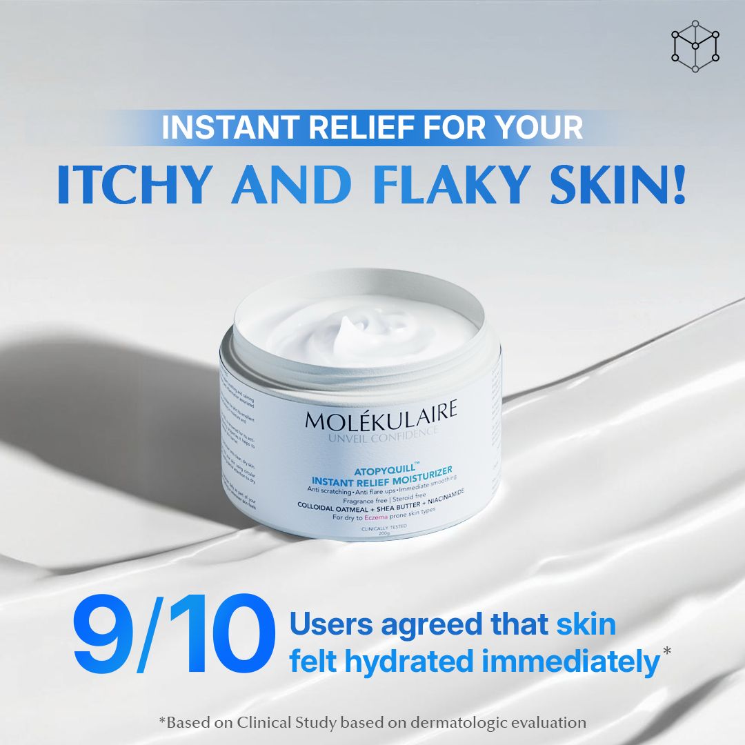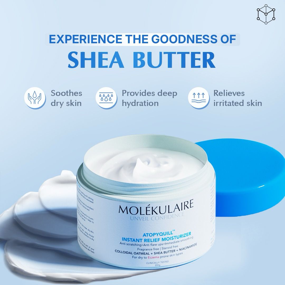 Atopyquill Instant Relief Moisturizer offers a soothing, gentle formula enriched with colloidal oatmeal extract, shea butter, and vitamin B5, delivering instant relief for irritated or flare-up-prone skin. This fragrance-free, steroid-free shea butter moisturizer ensures your skin heals with the power of only natural ingredients, and no harsh chemicals. Perfect for dry skin, it also provides deep nourishment and protection as a colloidal oatmeal moisturizer.