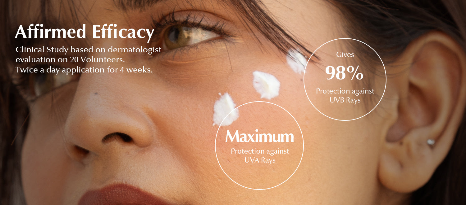 Our Healthy Ageing Sunscreen provides broad-spectrum SPF 50 PA +++ protection against both UVA and UVB rays, making it an excellent choice as a niacinamide sunscreen and hyaluronic acid sunscreen.