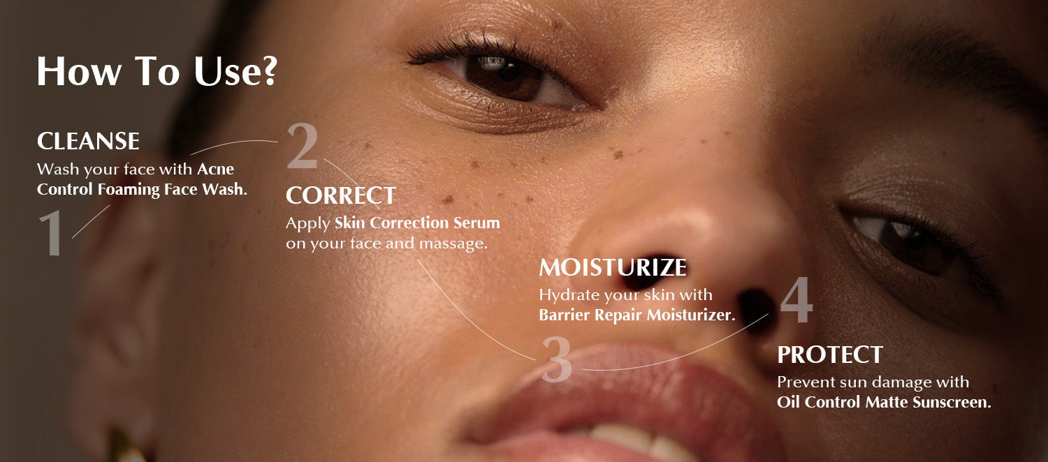 The Acne Control Foaming Face Wash cleanses deeply, eliminating excessive oil from your skin. With ingredients like Salicylic Acid, Zinc PCA, and Niacinamide this facewash penetrates deep into your skin and cleanses it thoroughly by unclogging your pores and regulating sebum levels.