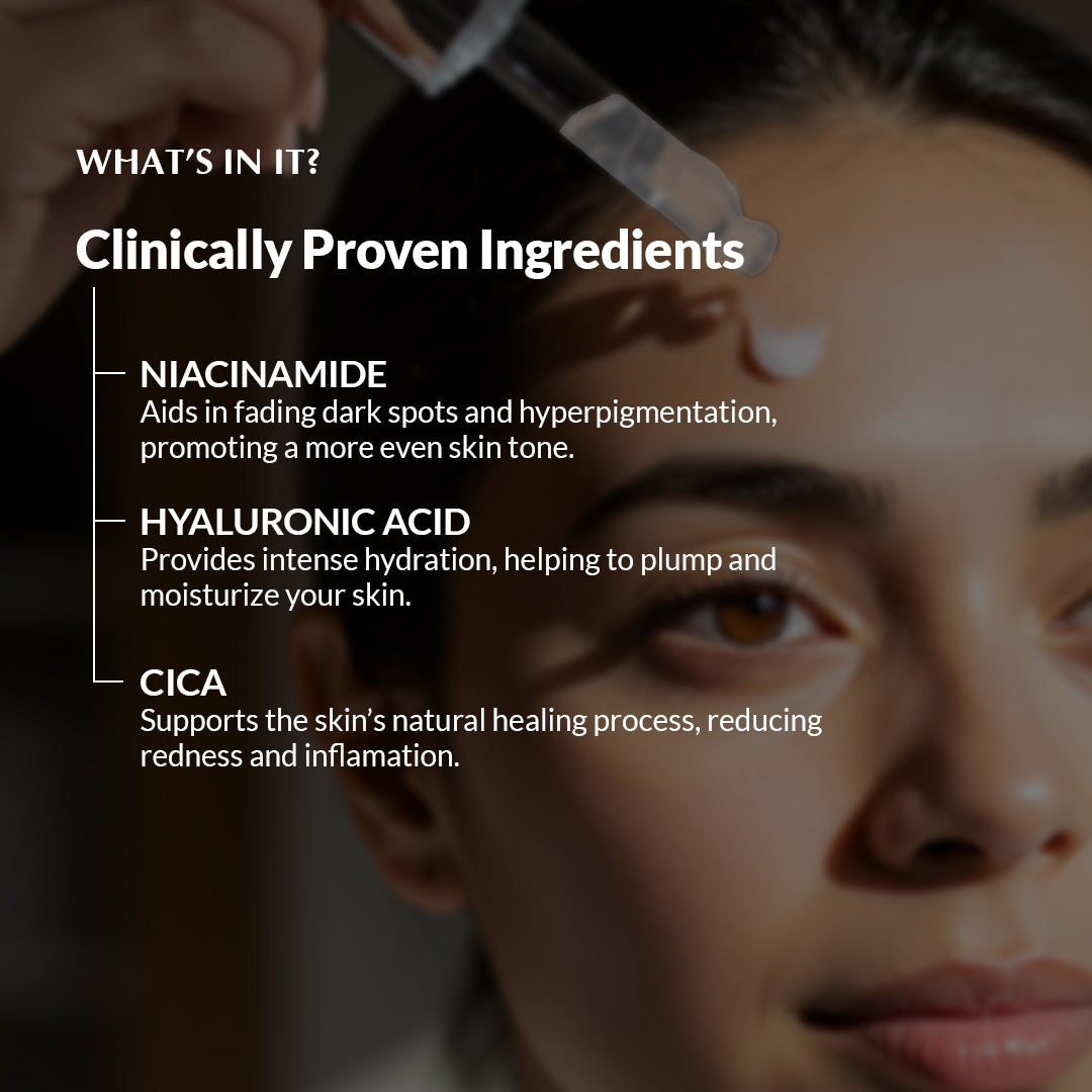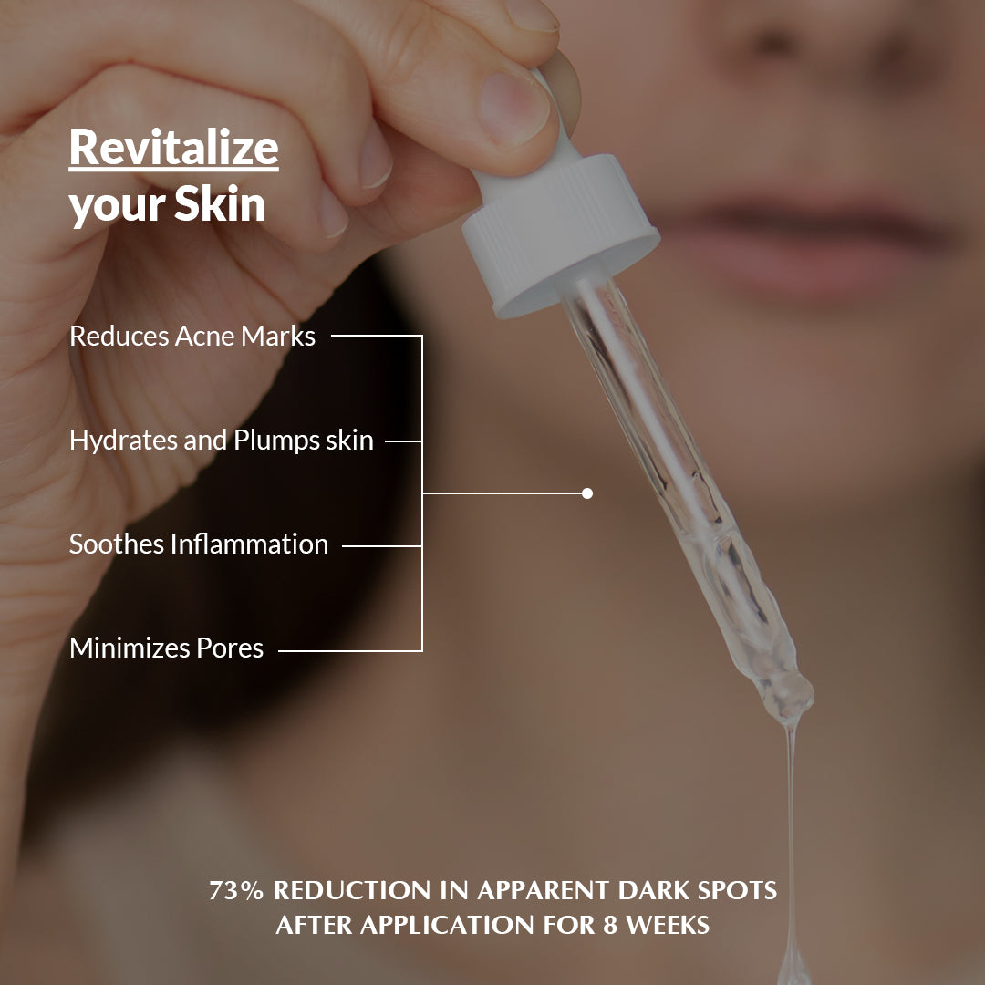 Through the control of melanosome transfer, niacinamide serum increases collagen formation to enhance skin texture, including smoothness, fine lines, and wrinkles. It also helps brighten and reduce hyperpigmentation.